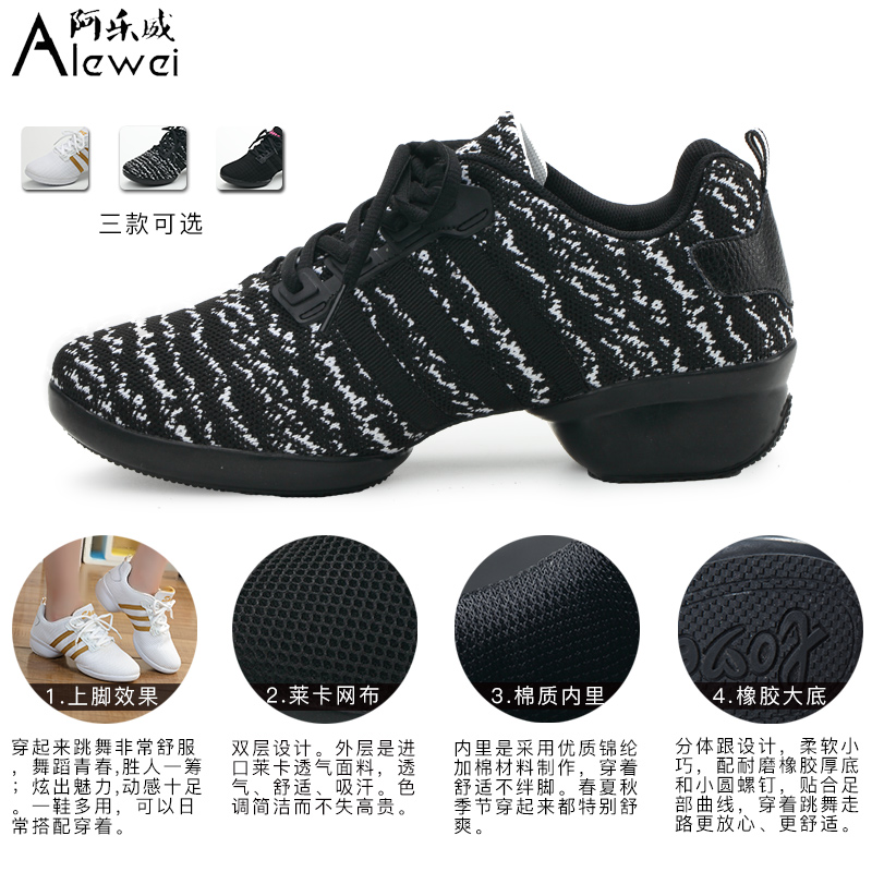 Alewei Spring Summer Dancing Shoes Woman with Adult Square Dance Shoe Netface Fitness Water Dancing Shoes Soft Bottom Dancing Shoes