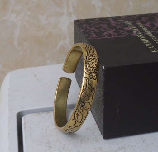 Brass bracelets, handmade women's copper bracelets, handcarved design, Pisces brass bracelets