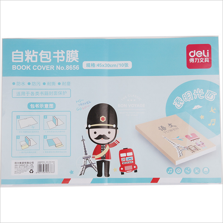 Deli 8656 self-adhesive 45*30cmB5 transparent integrated film bag book cover 10 sheets