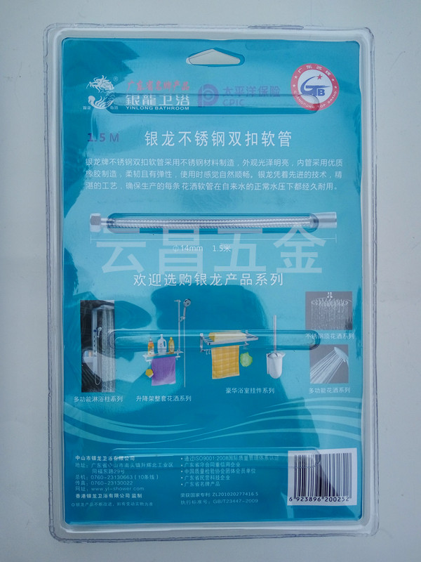 Yinlong stainless steel double button hose Stainless steel thickened shower shower tube 1 5M