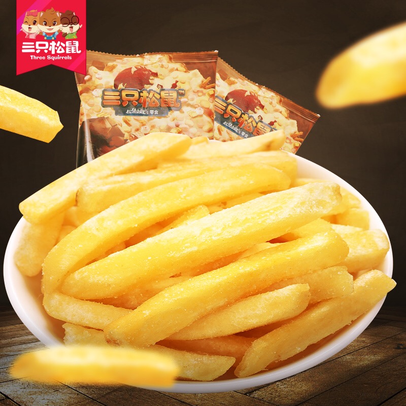 Three squirrels are basically puffed snacks with 75g non - chip fries and casual snacks