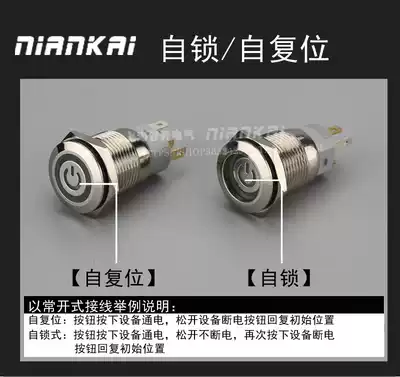22mm metal button self-locking power symbol ring self-reset flat head with light small start switch modification