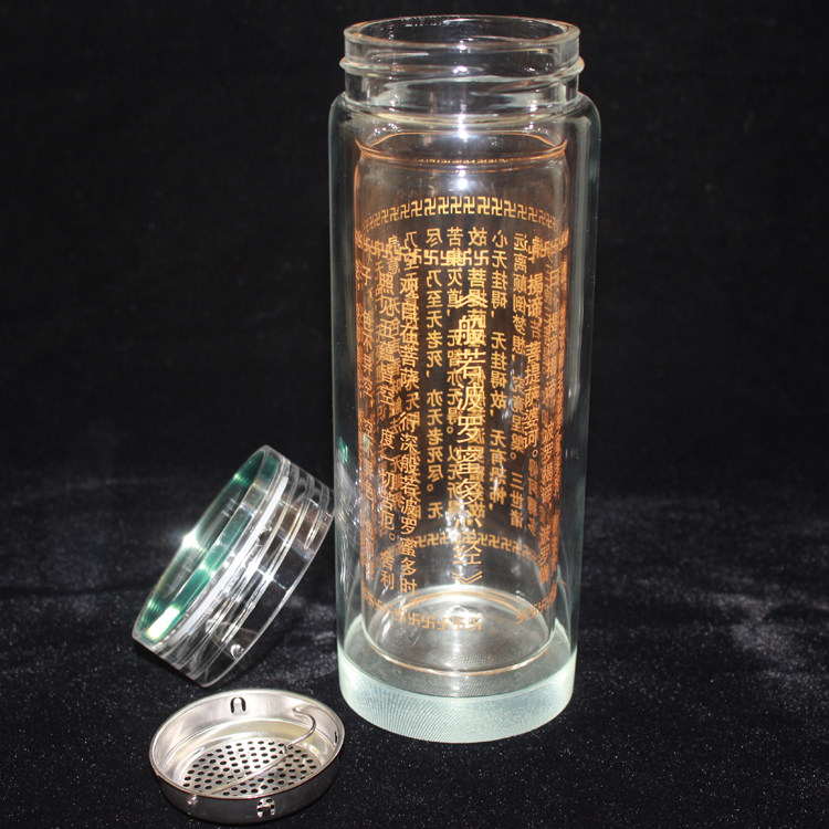 Heart warp crystal double glazed glass cup insulated holy water glass Six words true words via self-use tea tea with lid filter mug