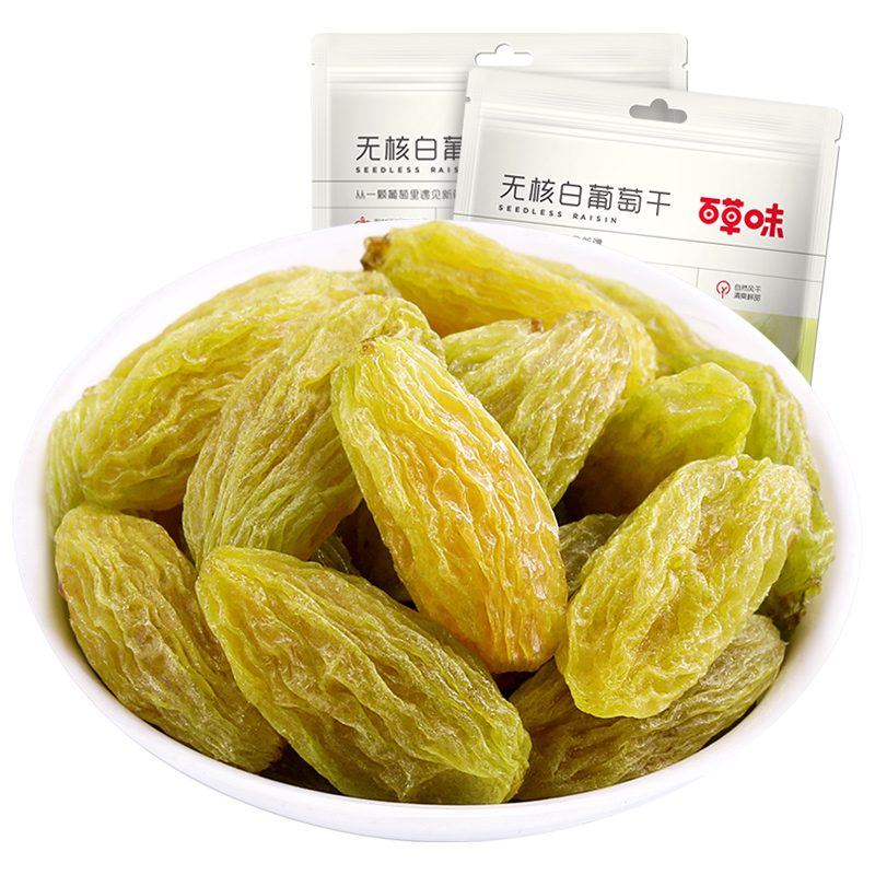 Hundred grass flavor seedless white raisins 100g*2 Xinjiang specialty dried fruit candied fruit dried fruit snack snack for children