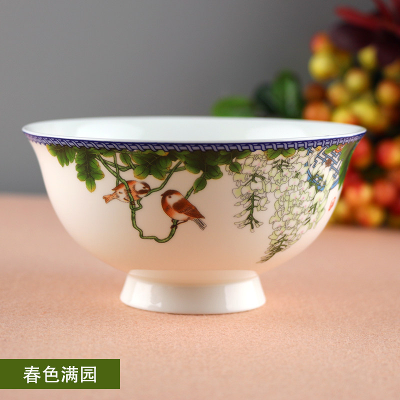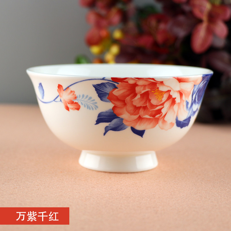 5 Jingdezhen Ceramic anti-scalding hands High-end Bone porcelain rice bowls Home Ceramic Rice High-footed Bowl Disc Dish