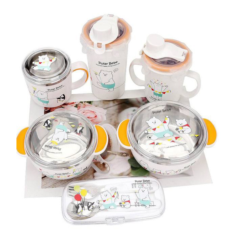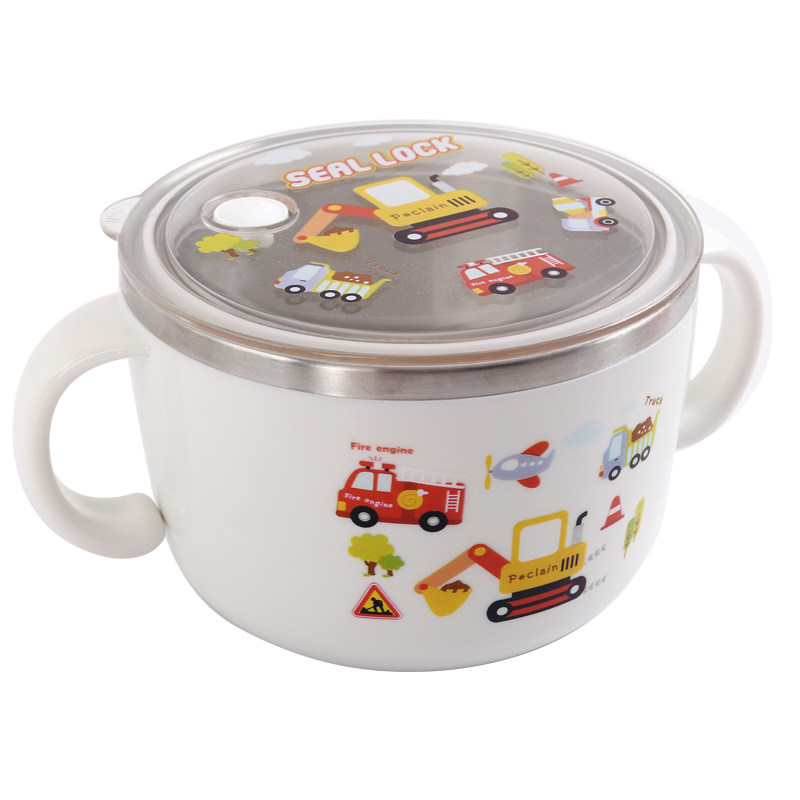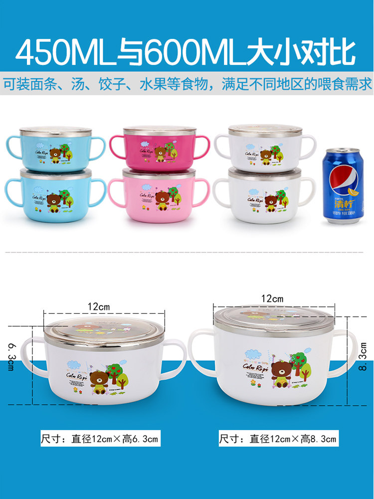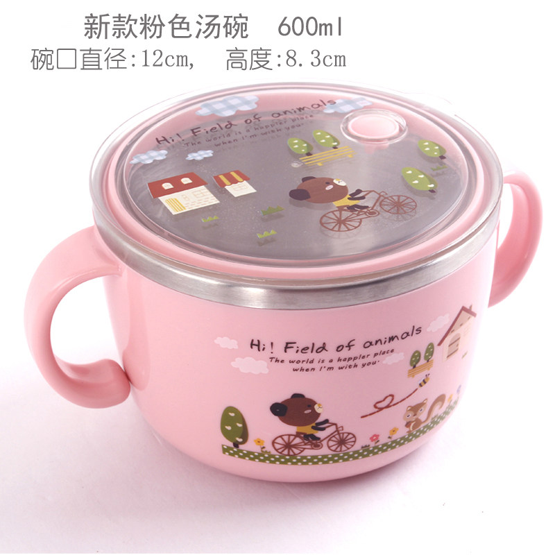 Korean double ear soup bowl 304 stainless steel large children's Japanese single with lid primary school student rice bowl household cute