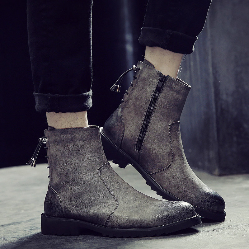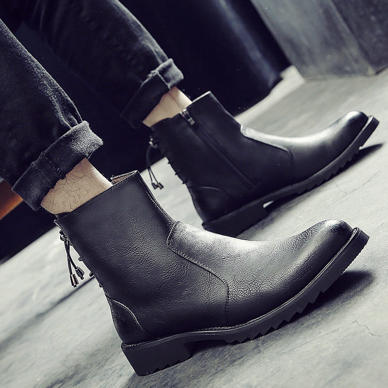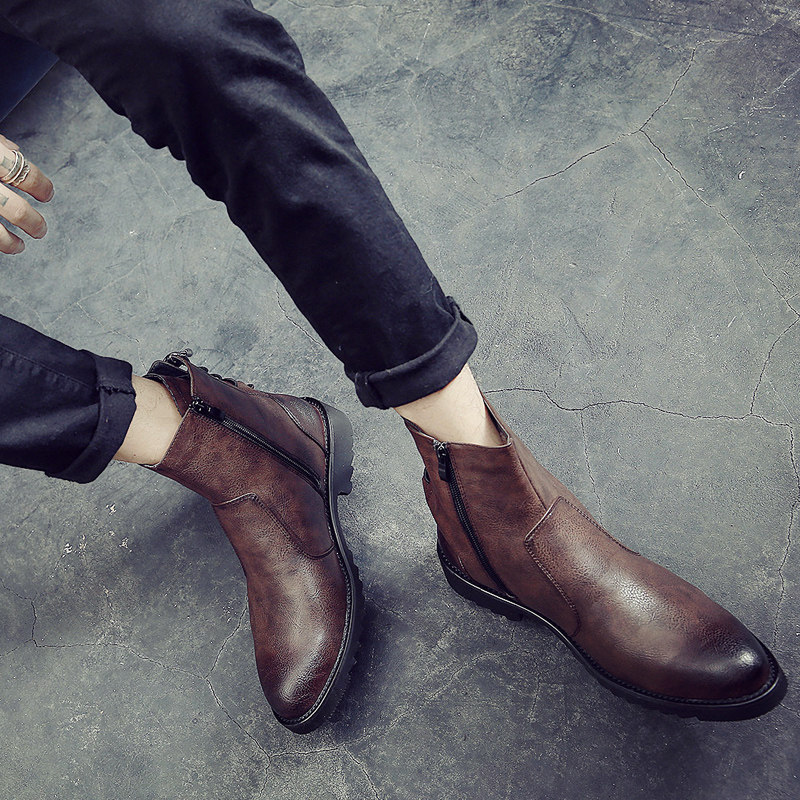 New men's boots warm cotton boots men's Martin boots British short boots Korean style trendy high-top pointed leather boots