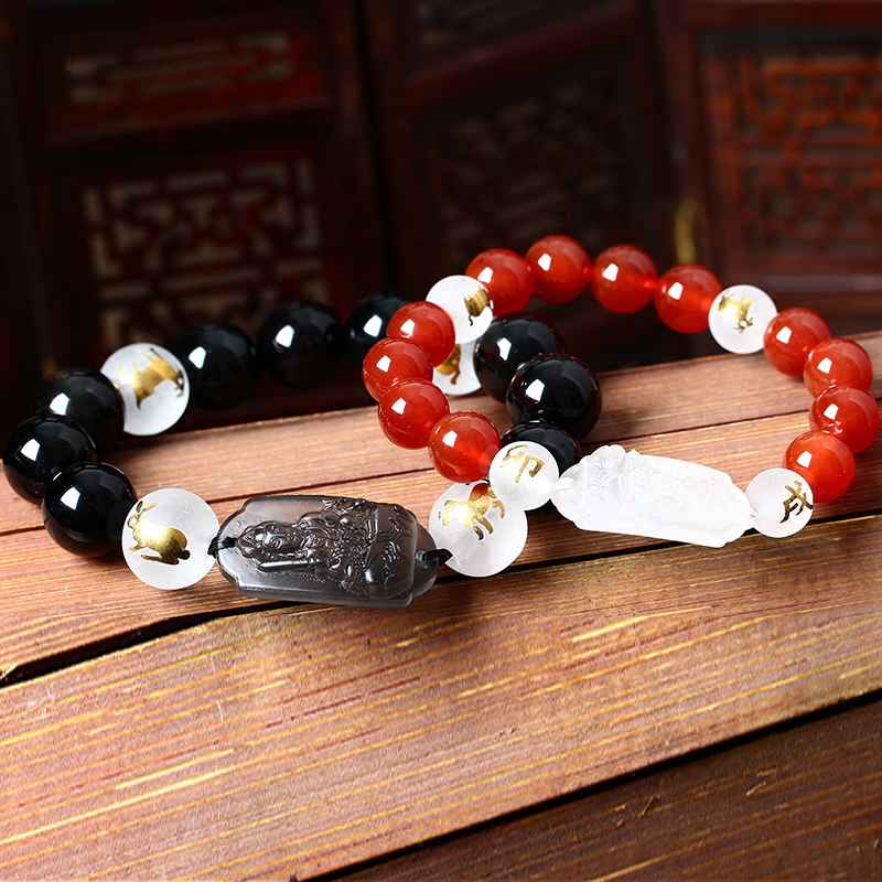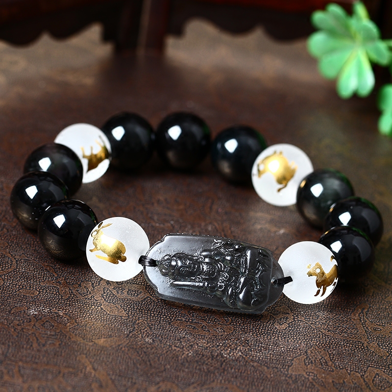 Rabbit Natal Buddha Manjushri Bodhisattva three-in-one Liuhe Zhengyuan guardian rabbit three-in-one bracelet Birthday gift Gift