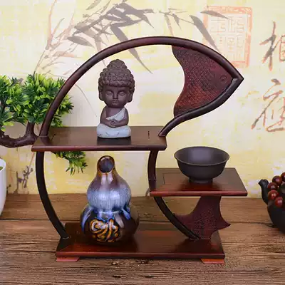 Boutique big red acid branch Bogu rack Teapot tea set rack display rack Mahogany handicraft ornaments Solid wood Dobao pavilion