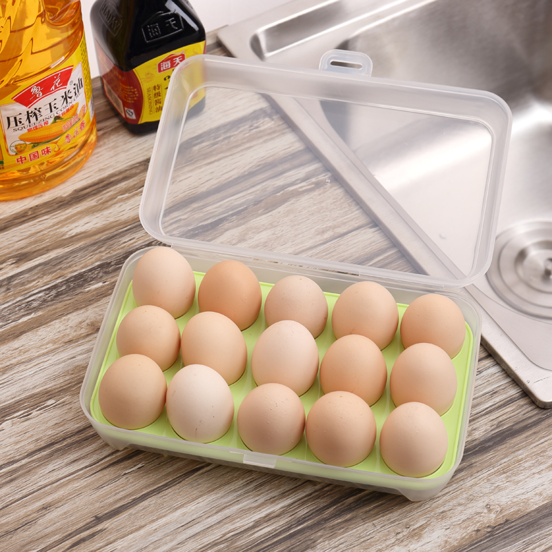 Plastic 15-compartment refrigerator shatterproof egg box anti-flavor crisper portable covered storage box household egg box