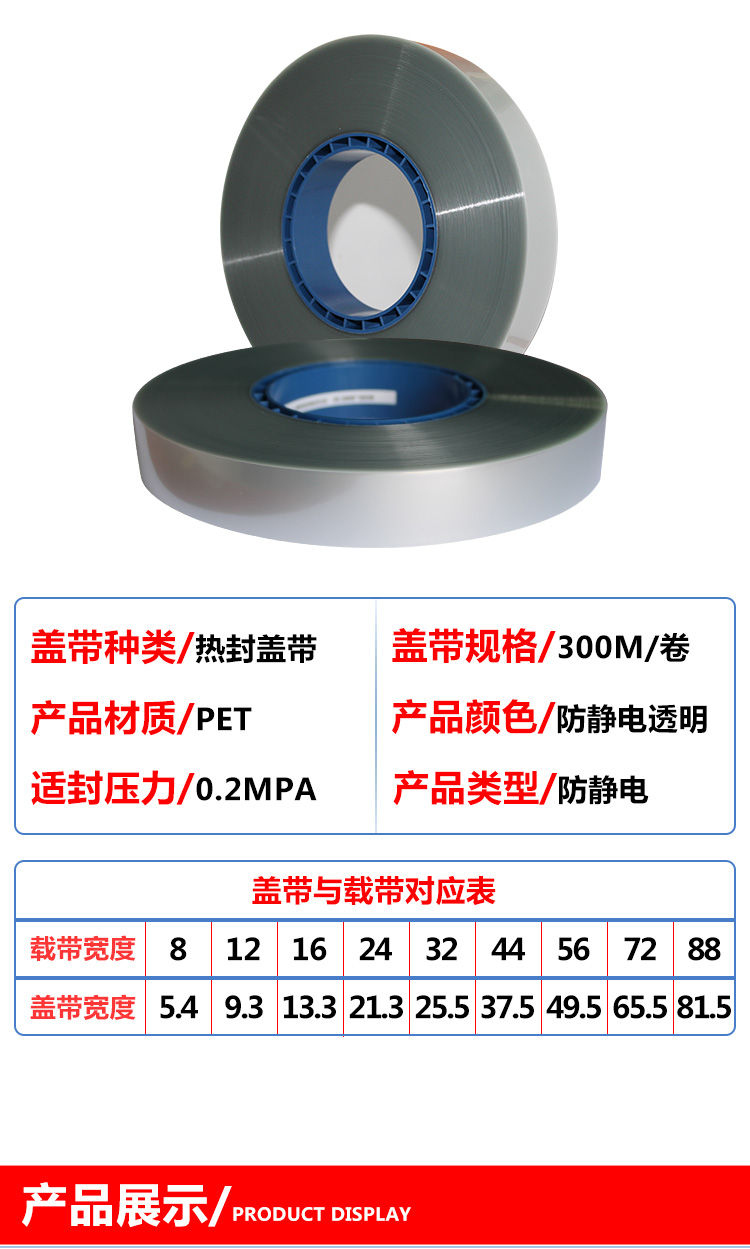 Electronic material with film upper cover with carrier tape with antistatic heat seal transparent upper with specifications complete manufacturer direct
