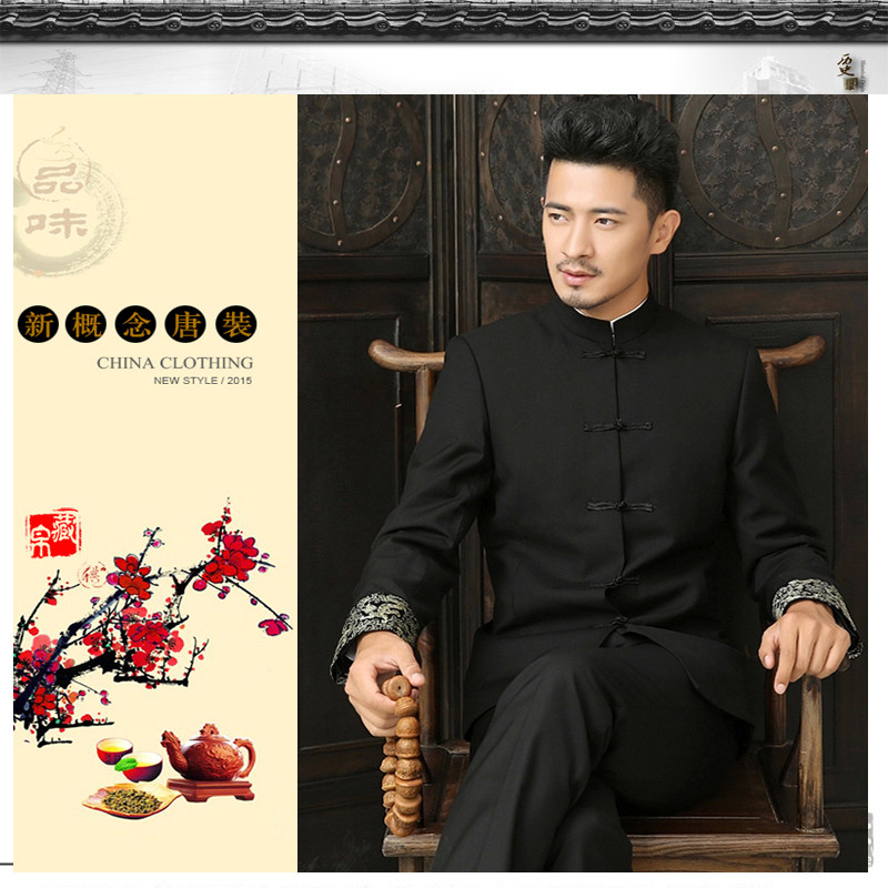 One-piece black jacket with fleece Navy blue jacket with one-piece fleece Black cuffs with dragon pattern Tang suit jacket with fleece one-piece