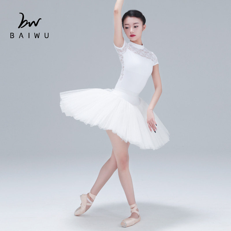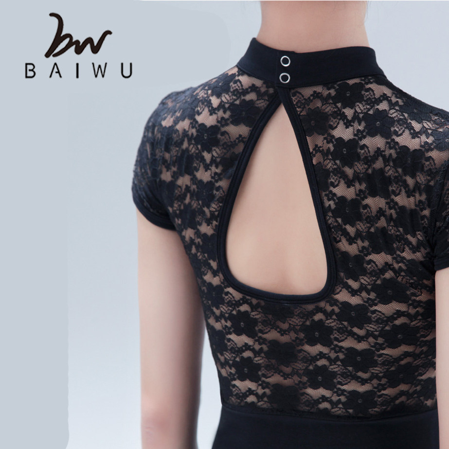 Bowu Lycra cotton high-neck lace stitching gym suit back hollow dance practice suit adult can insert chest pad
