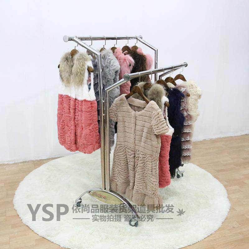 Clothing store hanger display rack electroplated stainless steel hanger Telescopic removable double rod shelf with pulley hanger