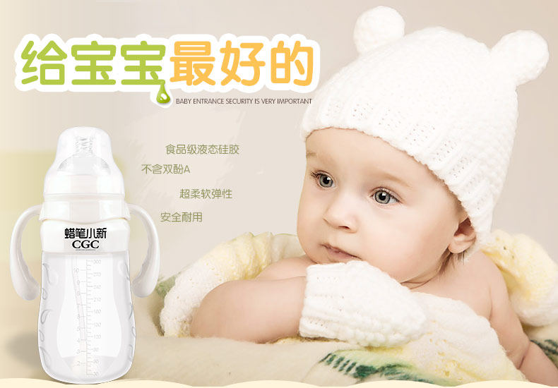 Crank Xiao New Food grade silicone bottle with handle wide diameter anti - inflammation baby baby bottle