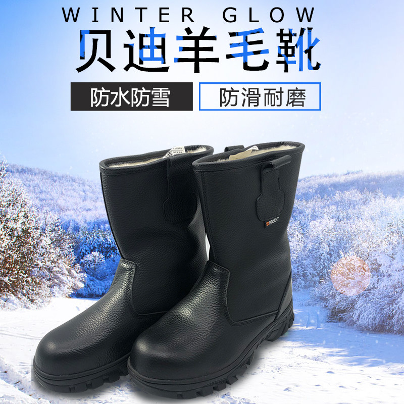 Labor insurance boots cotton winter CNPC outdoor anti-smashing non-slip wear-resistant wool snow boots ice fishing waterproof fur one