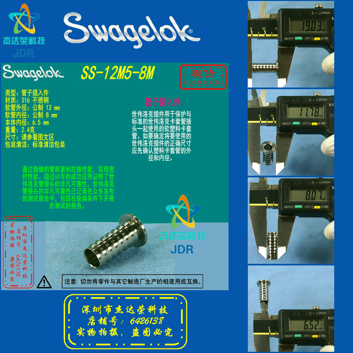 (SS-12M5-8M) Swagelok tube insert 12 mm outside diameter x 8 mm inner diameter