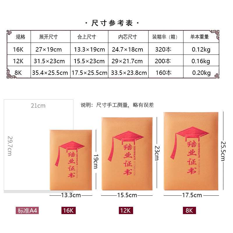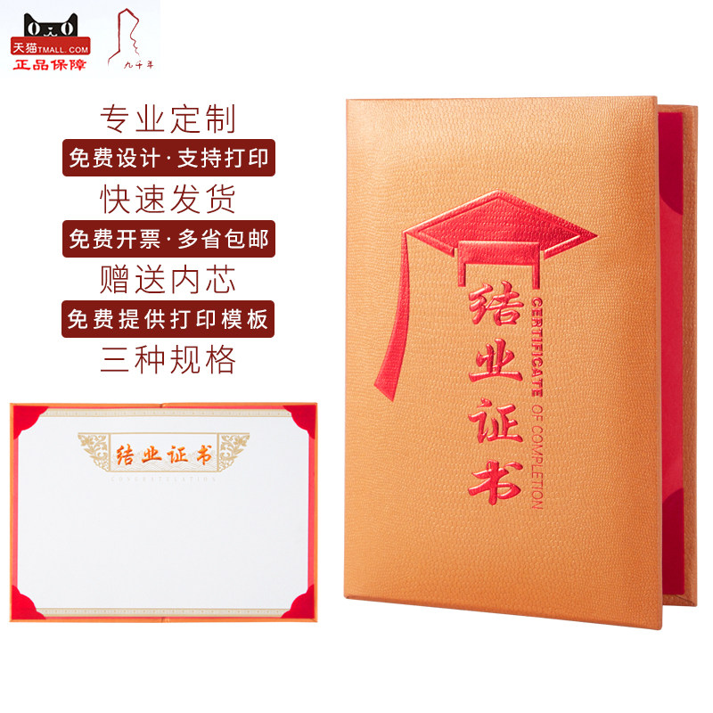Golden copper color certificate certificate of custom-made high-grade special paper A4 cover Shell custom training school certificate set wholesale inner core can be printed kindergarten certificate doctoral cap