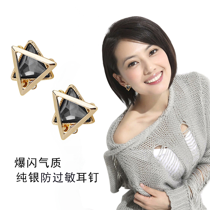 Japan and South Korea Hypoallergenic S925 Sterling Silver Earrings Crystal Stud Earrings Female Simple Versatile Earrings Female Temperament Sweet Korea