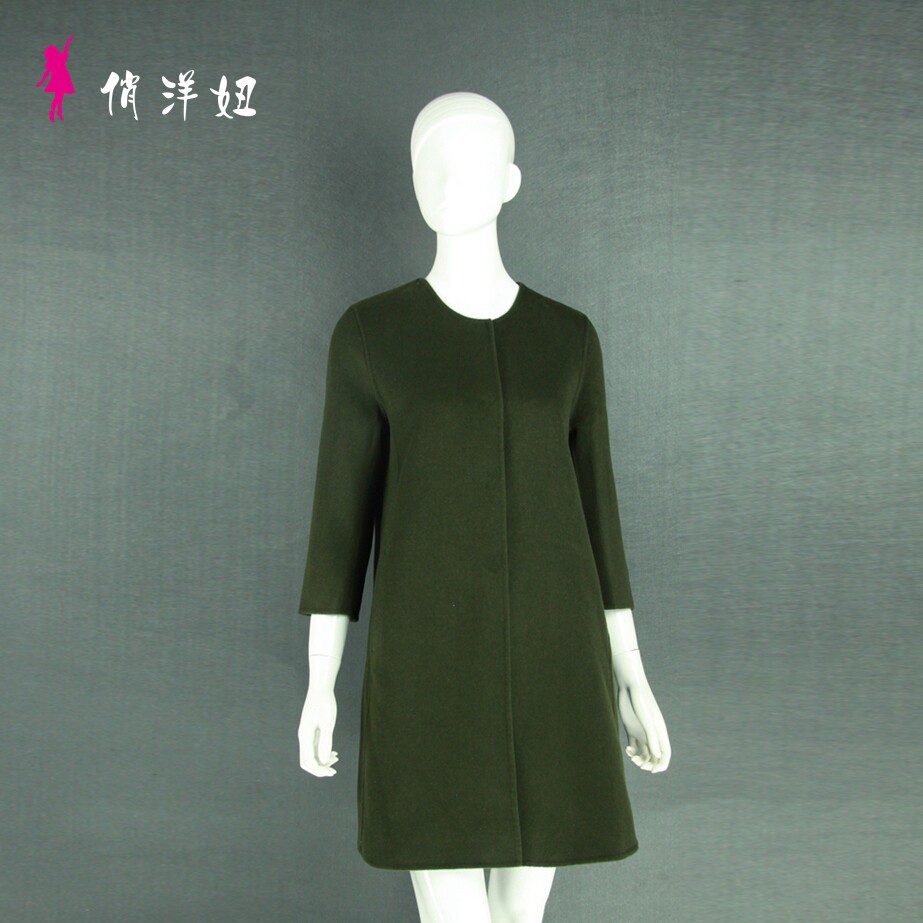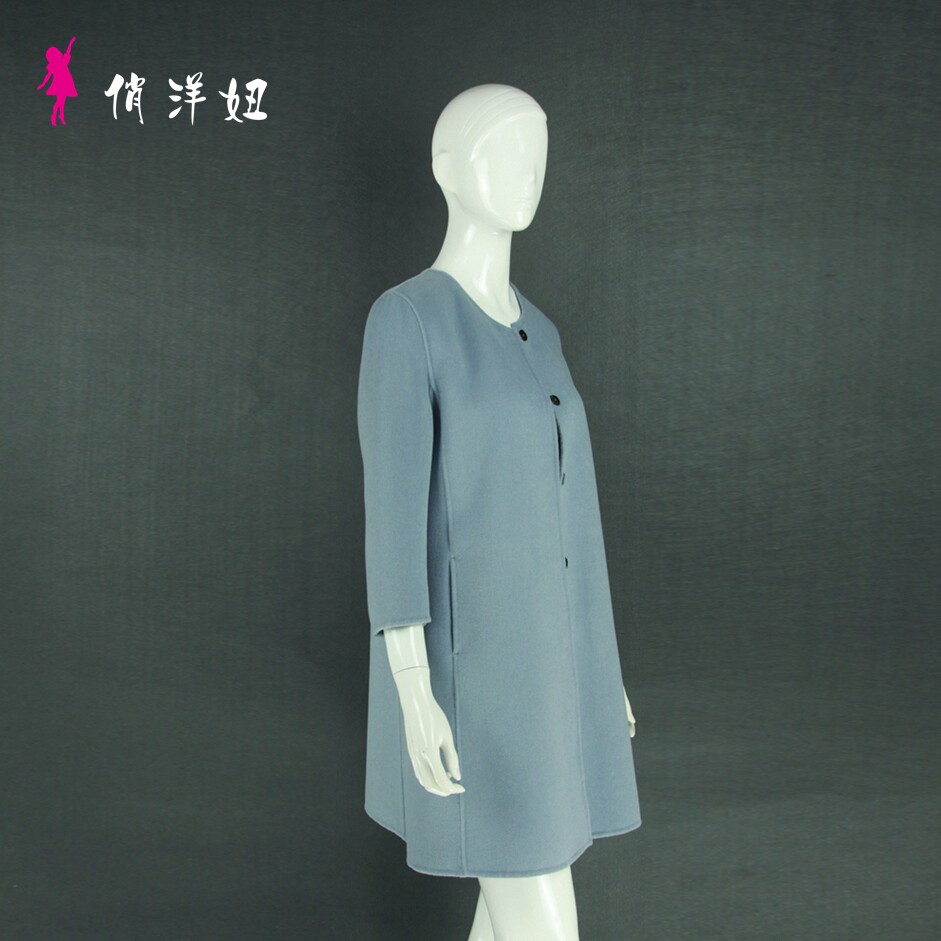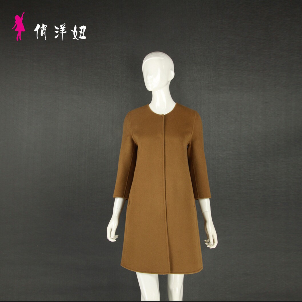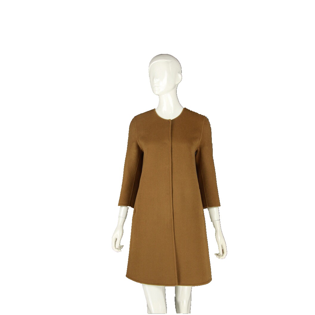 New simple quality collarless women's handmade double-sided cashmere woolen trench coat factory direct sales