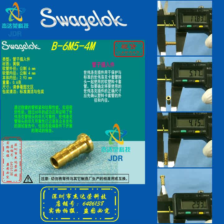 (B-6M5-4M) Swagelok sei Weiloc brass pipe inserts 6 mm out of x 4 mm