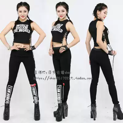 Black jazz dance top Female sense umbilical bungee jump jazz dance clothing Knitted sleeveless T-shirt high waist strap