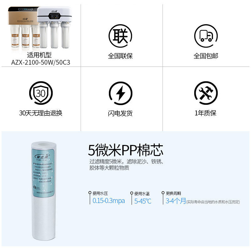 Ann's star 50W Water purifier filter core AZX2100 filtration machine original RO reverse osmosis ultra 50C3 activated carbon PP cotton