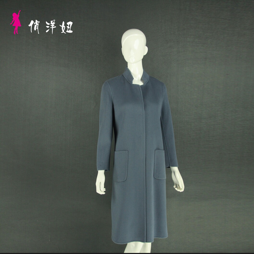 New European and American stand-collar spot women's handmade double-sided cashmere woolen trench coat factory direct sales