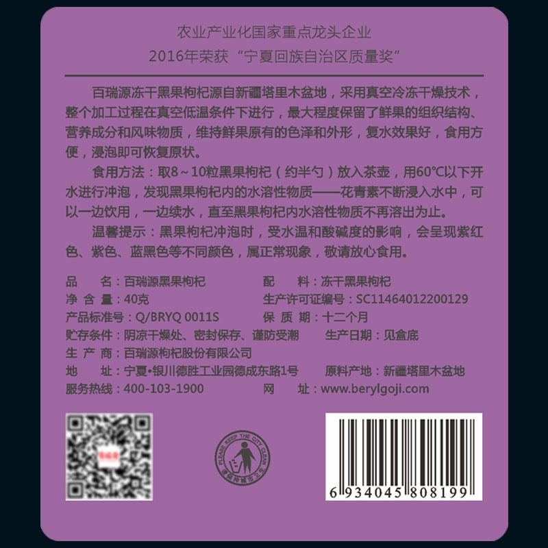 (New Year Gift Box) Bairuiyuan Freeze-dried Black Wolfberry Gift Box Ningxia Official Flagship Store Giving New Year Gifts