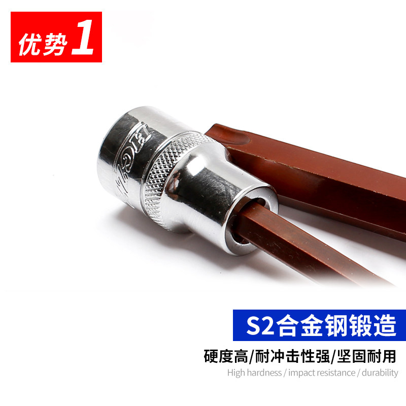HGZZ Haojiao Large flying lengthened rotary tool pressed batch sleeve head lengthened 1 2 large flying 12 5mm 5mm 12 corner S2 Batch of head