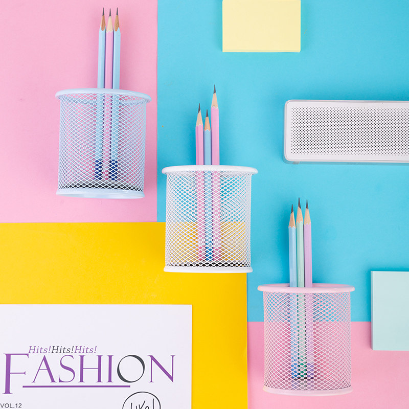 Able 9153 Color iron mesh pen holder Colorful Round Metal Mesh Brief FASHION DESK FACE PEN CASSETTO PEN HOLDER