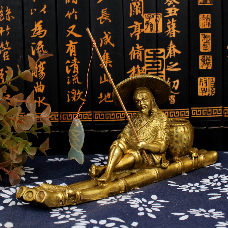Poly-Edge Cabinet Brass Ginger fishing old man figure swaying pieces fishing wongfishing home craft shop opening gifts