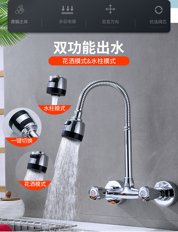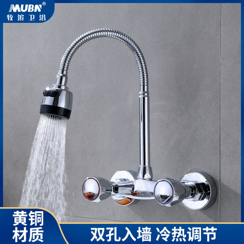 Double switch into the wall kitchen hot and cold faucet double hole washbasin laundry table cabinet pool mixed water valve home