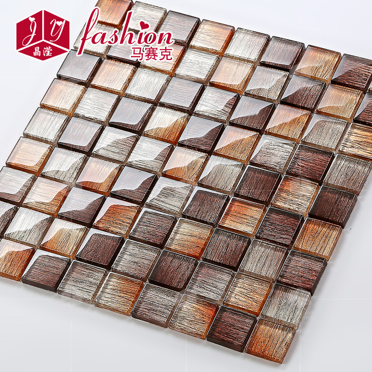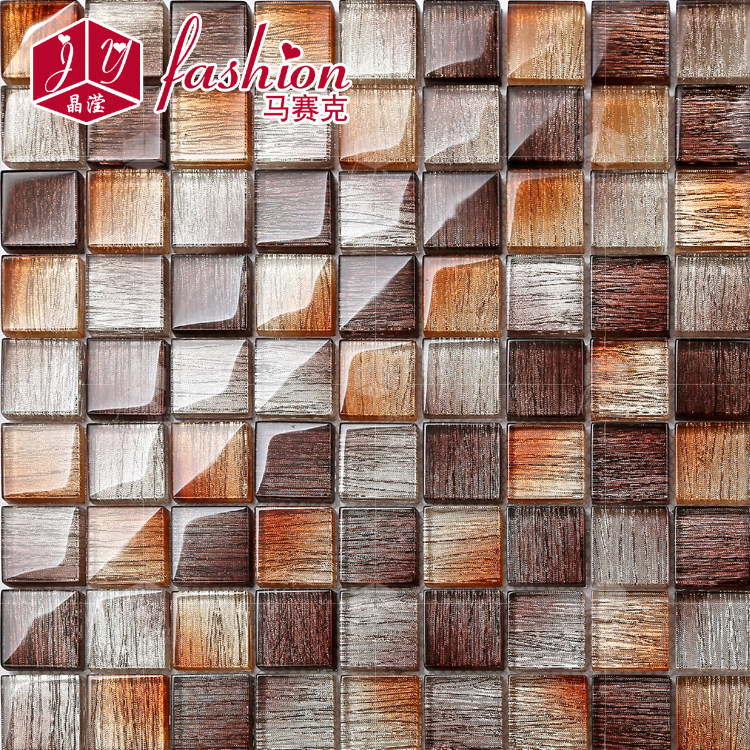 Gold foil mosaic crystal glass puzzle porch TV background wall gold hand - drawn bathroom tile