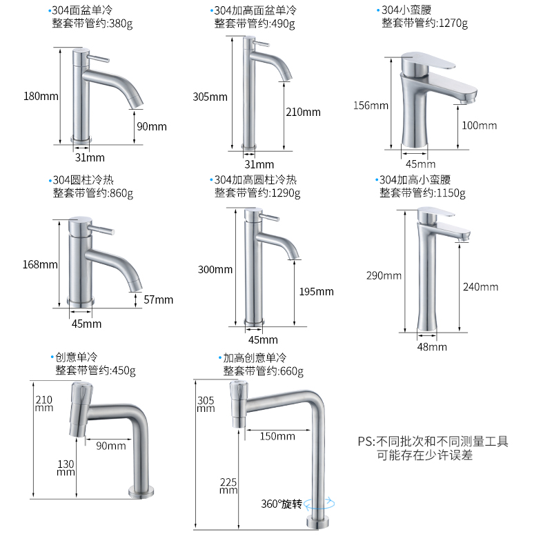 Single zinc alloy single cold faucet Zinc alloy faucet with 60cm tube Vertical single cold faucet without tube Vertical single cold faucet with 60cm tube 304 high basin Single cold A section without tube 304 high basin