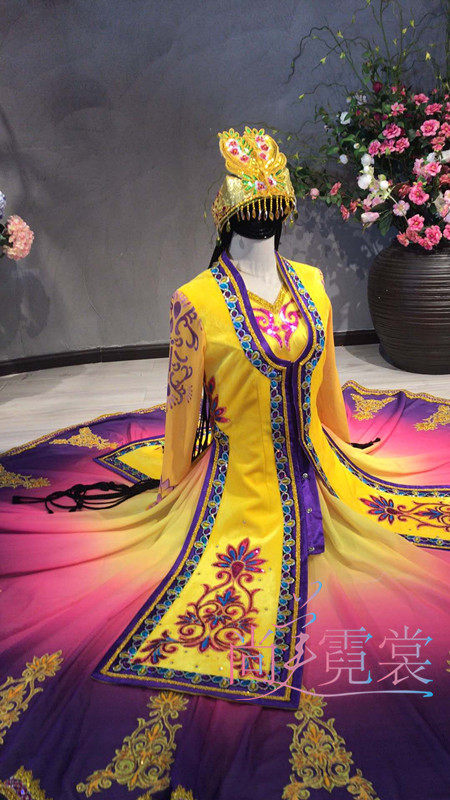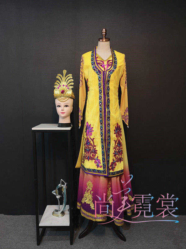 Lotus Award Nationalities dance "Long-length braid" Dance suit Xinjiang ethnic dance costumes Beijing Custom rental