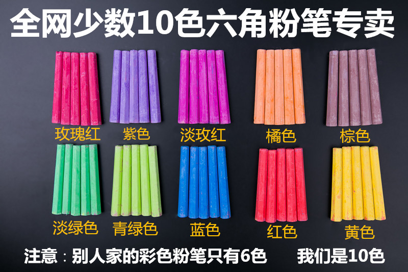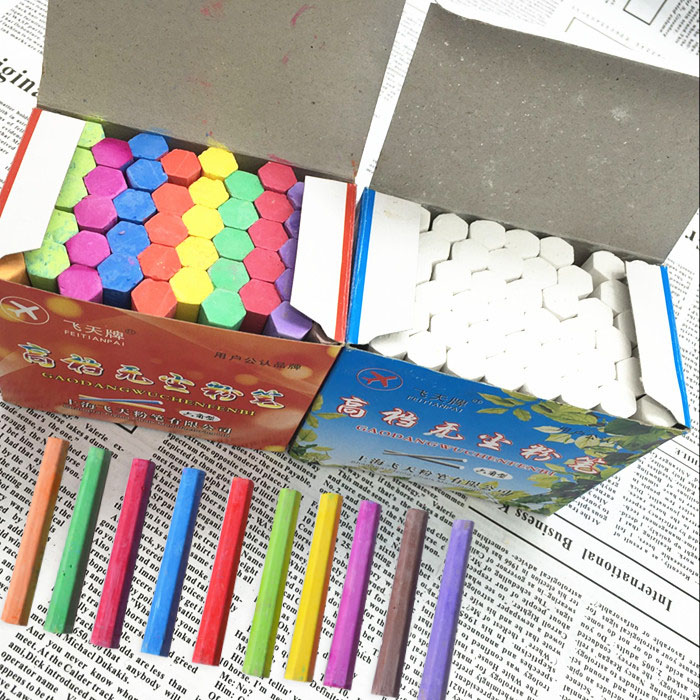 Colored chalk Low dust children's drawing chalk Feitian brand blackboard newspaper teaching hexagon chalk 4 boxes
