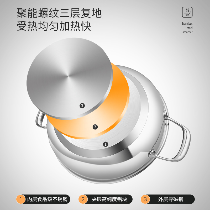 German Frieslang steamer Imported 304 stainless steel seafood steamer home three-layer large steamed steam