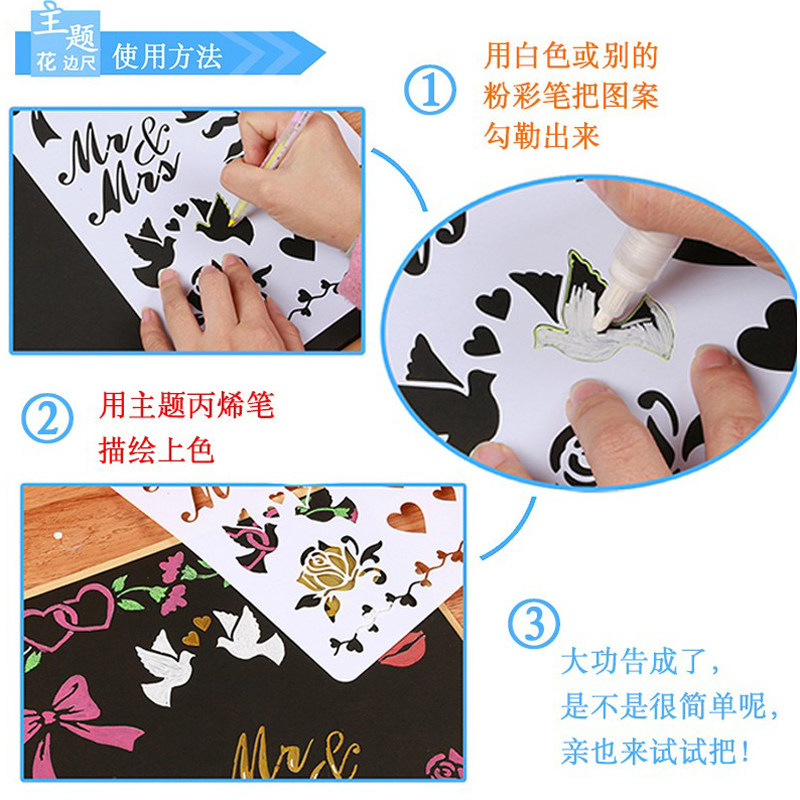 Theme Lace ruler DIY album album production Handmade material accessories Painting painting template Hollow painting