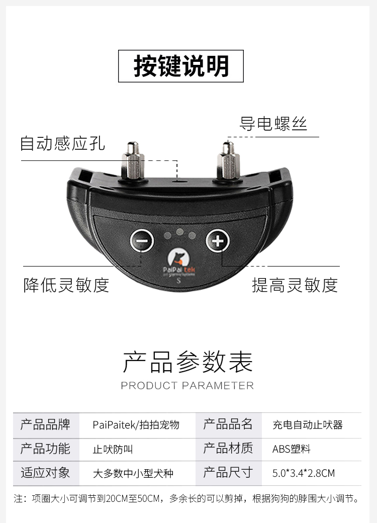 PaiPaitek automatic stop bark dog small dog dog anti-scream Divine Instrumental Classic electric shock Item Circle Domestic