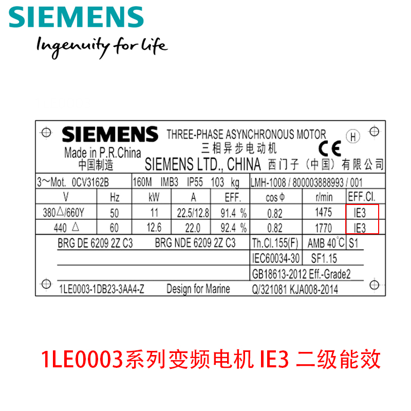 Siemens motor 380V three-phase AC secondary energy efficiency frequency conversion 0 55-315KW brake encoder pure copper