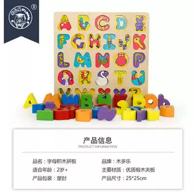 Mudo Le Children's Wooden Alphabet Shape Clock Puzzle Grab Child Building Block Toy