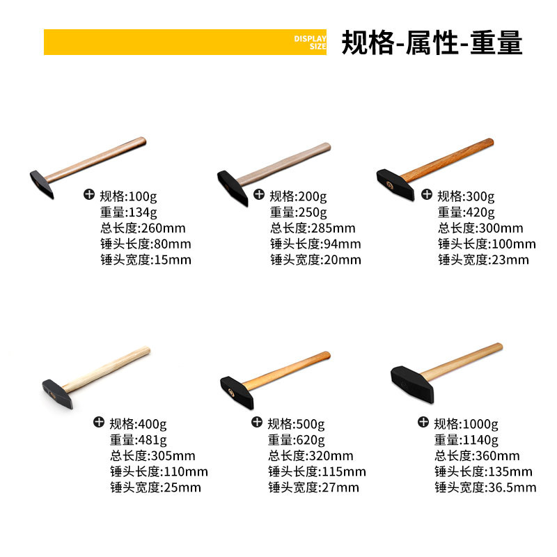 300g Imported walnut fitter hammer 500g imported walnut fitter hammer 1000g Imported walnut fitter hammer 100g fitter hammer 200g fitter hammer 300g fitter hammer 40