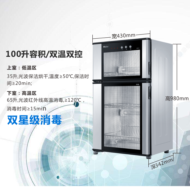 Haier ZTD100-A disinfection cabinet Vertical household light wave disinfection double door double temperature disinfection bowl cabinet
