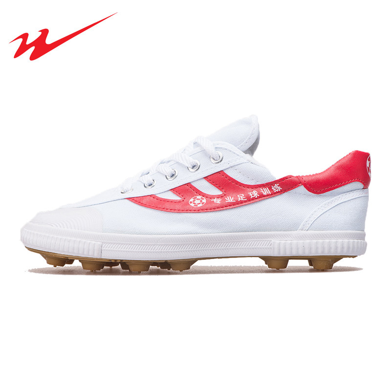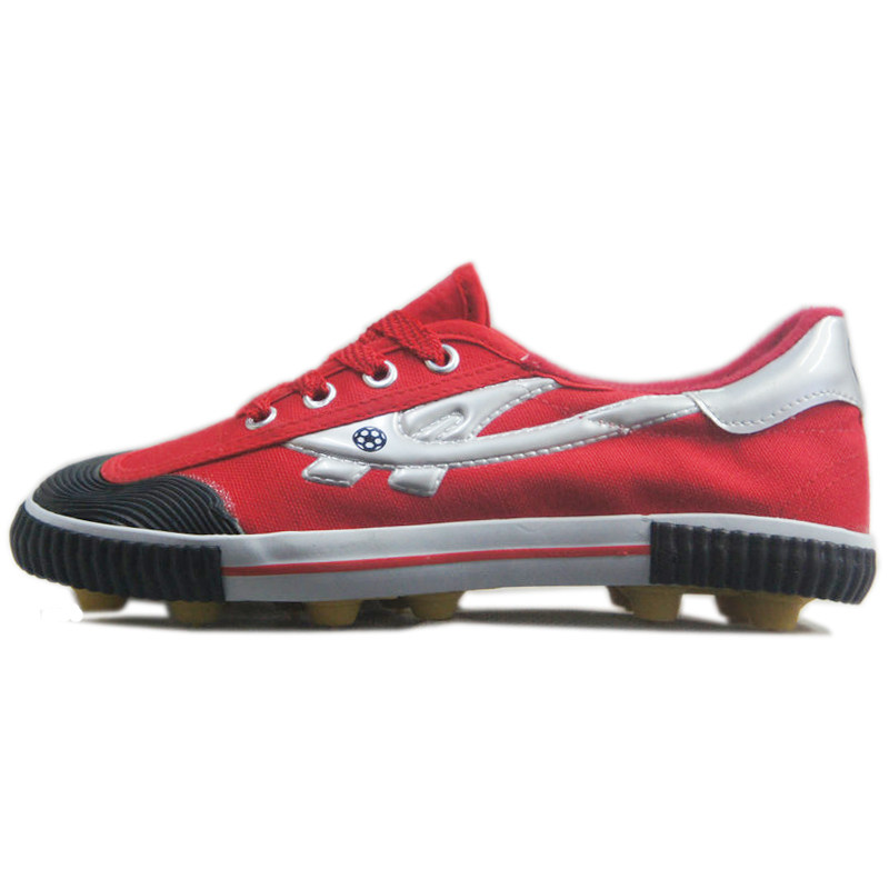 Qingdao Double Star Eight Special Canvas Broken Nail Tendon Bottom Red Youth Children's Artificial Grass Non-slip Soccer Shoes