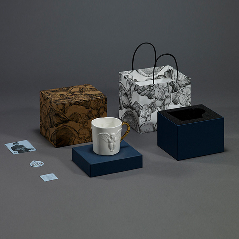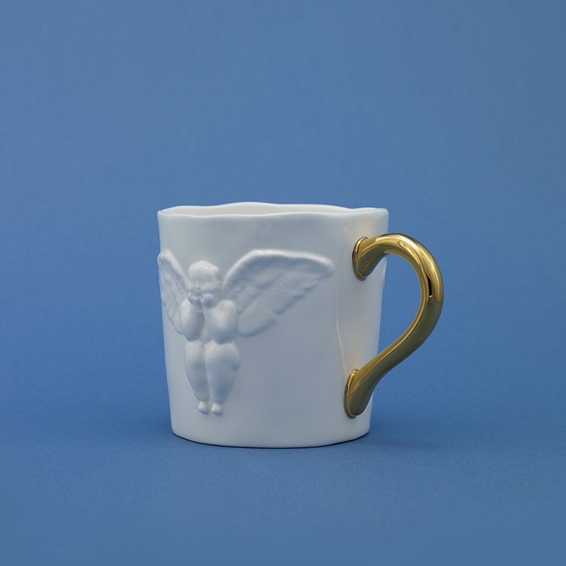 Rare art double-sided male angel relief borscht white porcelain water cup light luxury birthday gift gift box