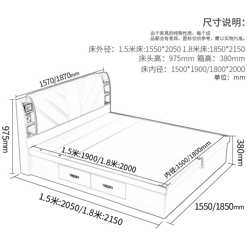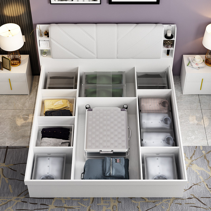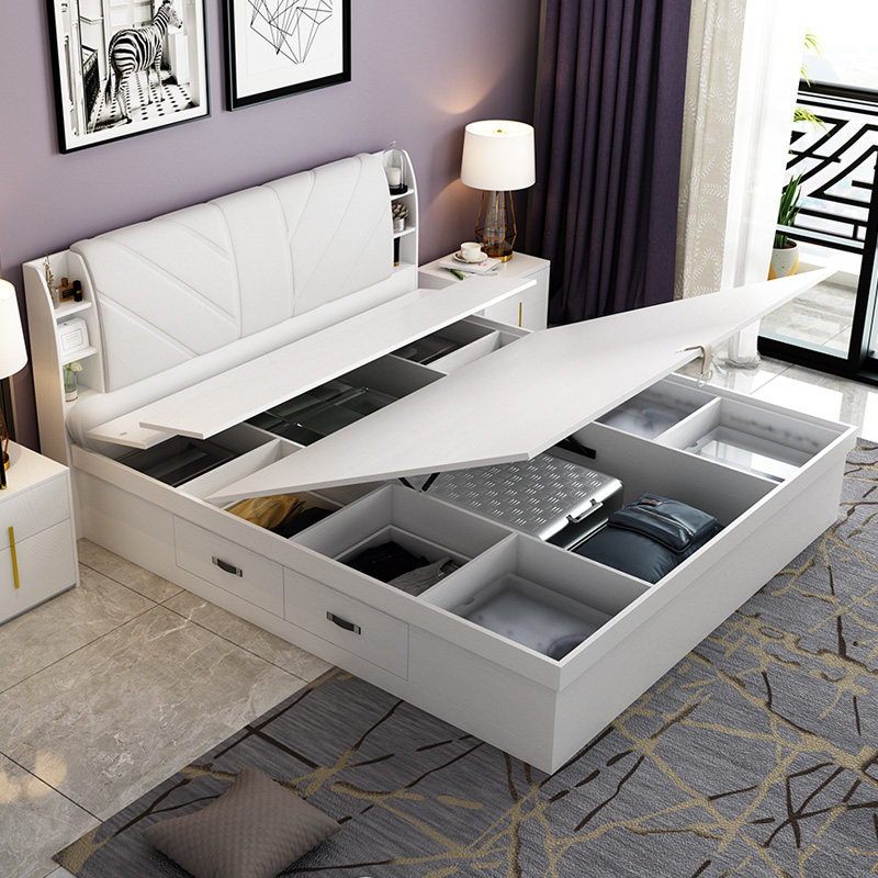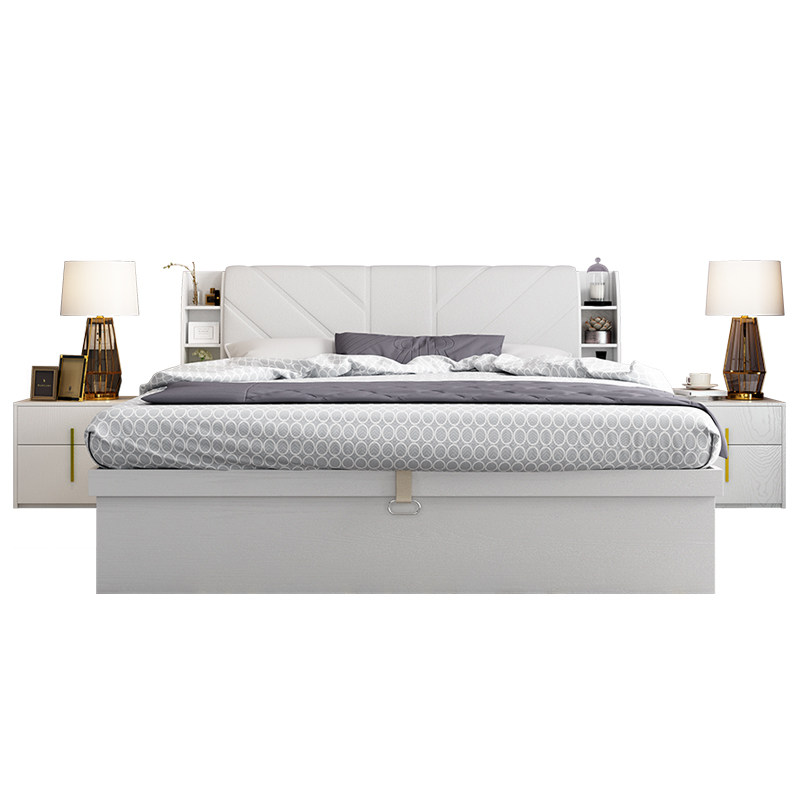 Pneumatic high box bed (white) white pneumatic high box bed 1 bedside table white pneumatic high box bed 2 bedside tables white pneumatic high box bed 5CM palm mat 2 bedside table pneumatic high box bed 1