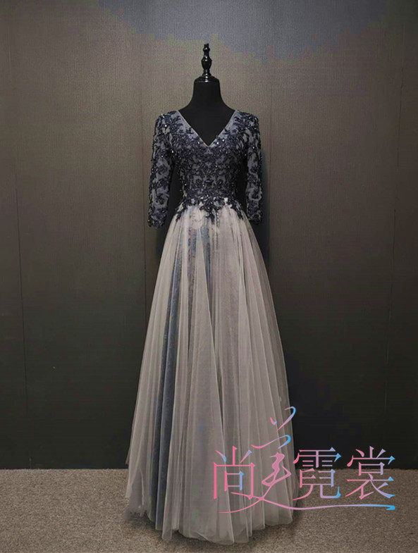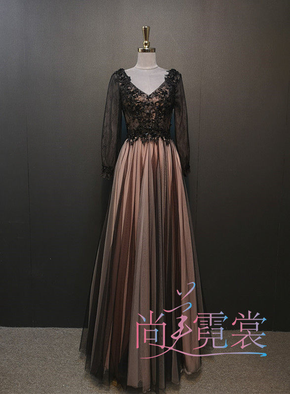 Hire Evening Dress Woman Upscale Handmade Nail Pearl Long Sleeve Piano Playing Gala Dinner Walking Show Dress Beijing