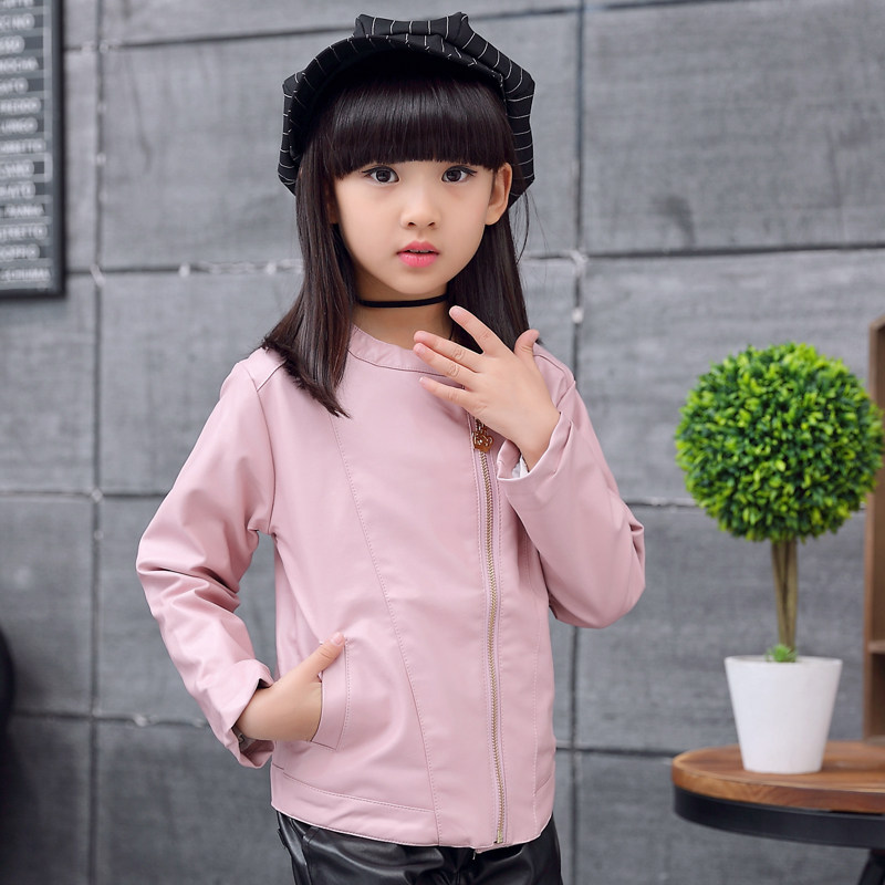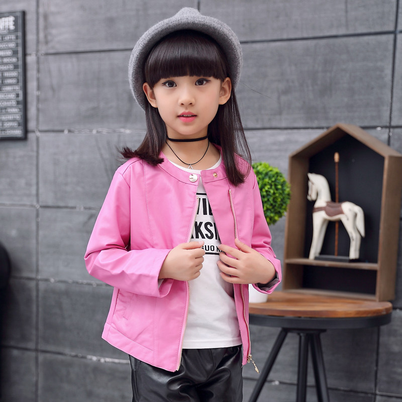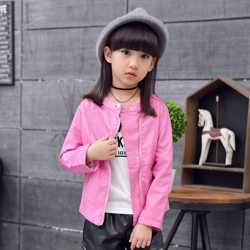 Children's Clothing 2021 Spring Dress New Girl Clips Jersey Child Pu Leather Clothes CUHK Child Spring Han Edition Girl Coats Tide