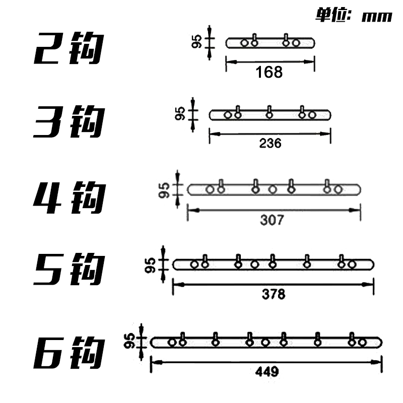 Two hooks for three hooks and four hooks for five hooks.